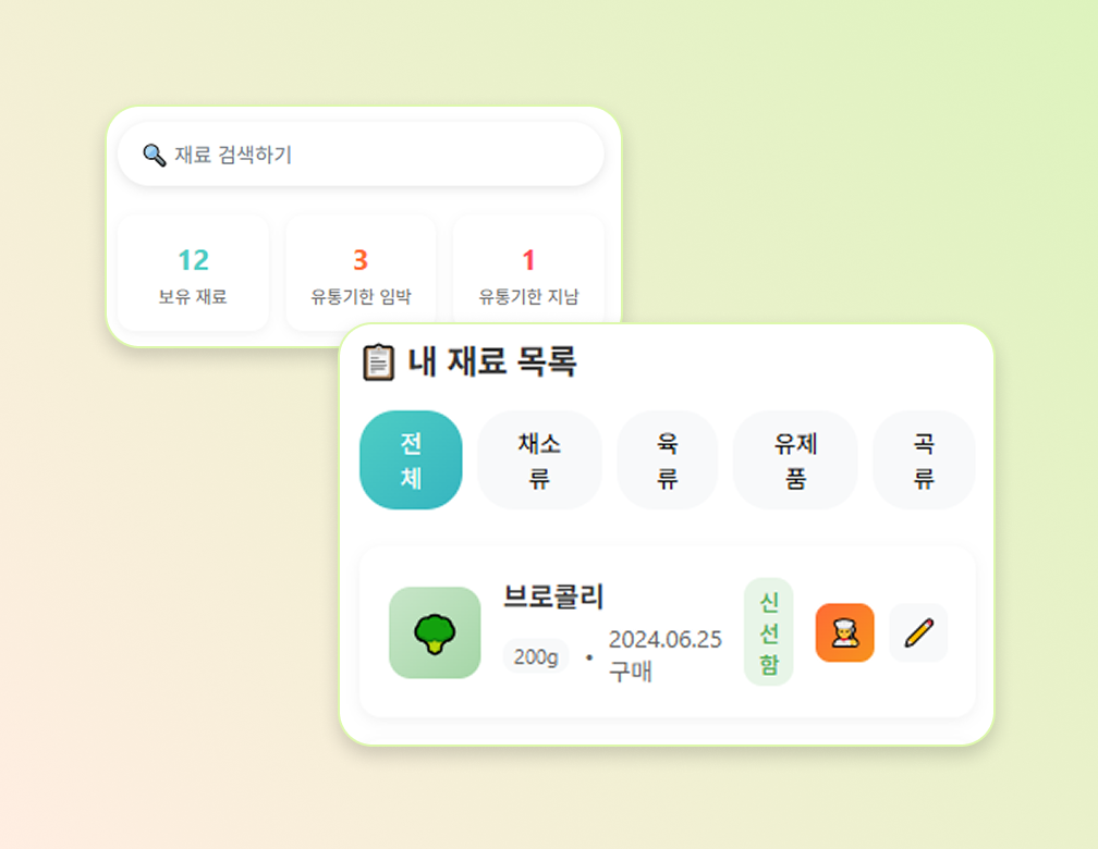 냉장고 속 재료만 입력하면 AI가 알아서 아이용 + 어른용 레시피를 추천해줍니다.