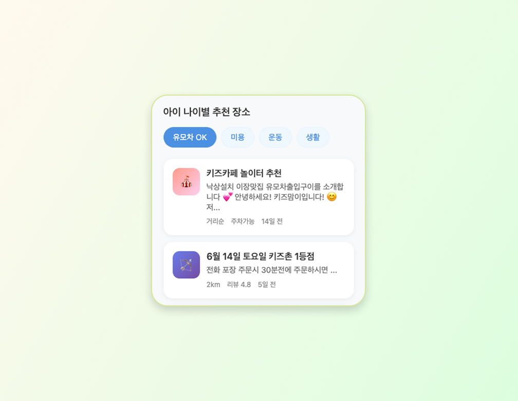 아이와 함께할 수 있는 근교 나들이 장소를 지금 내 위치 기준으로 추천해주는 서비스!